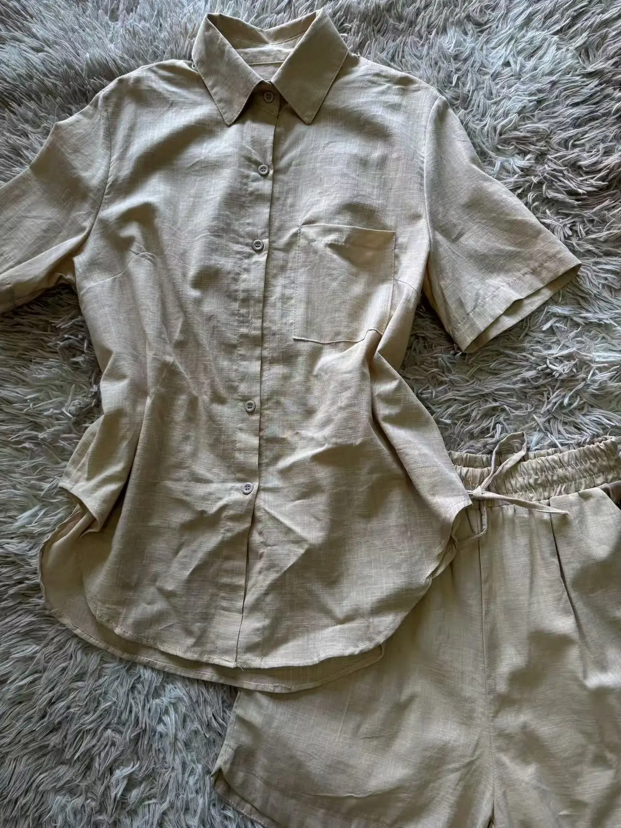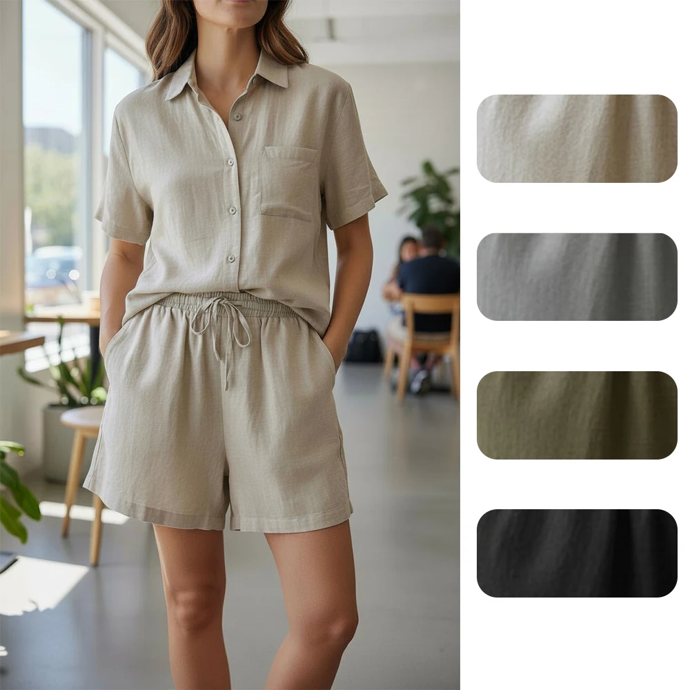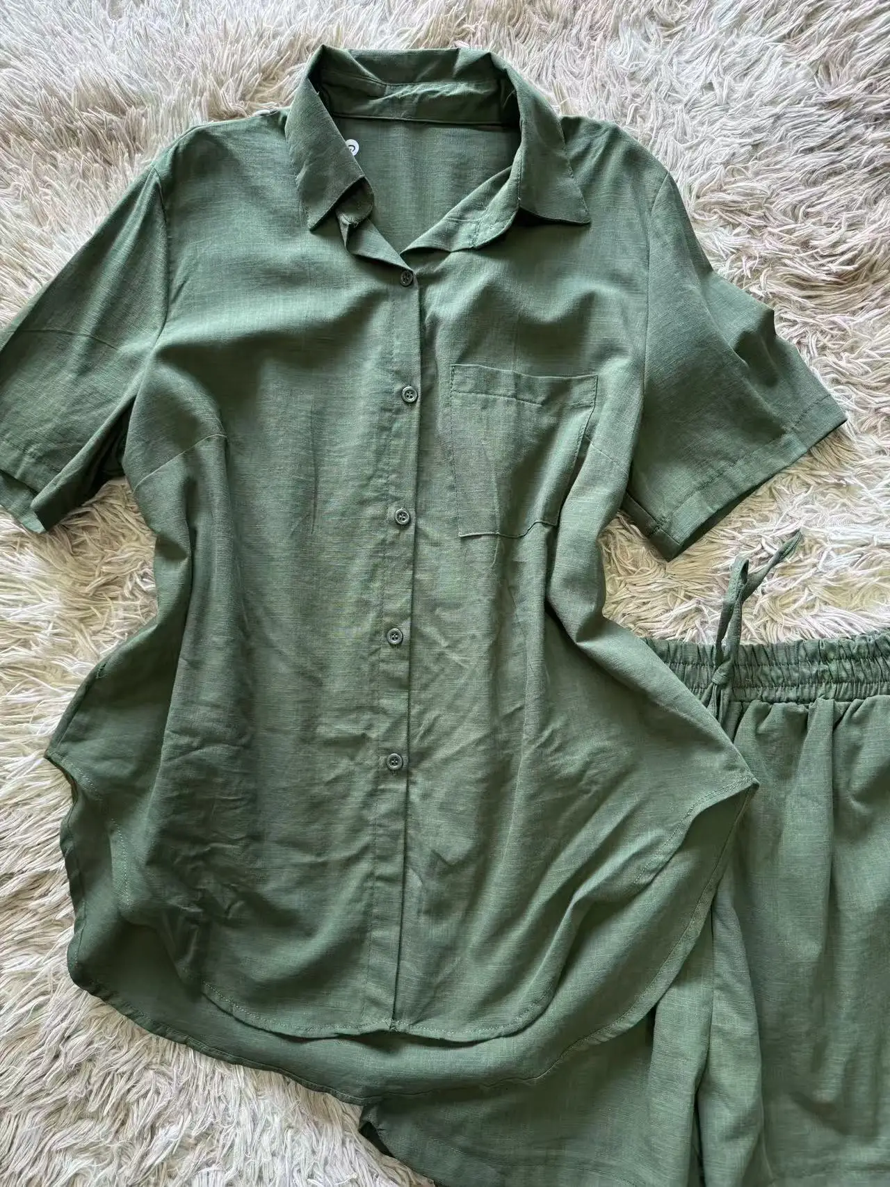 Conjunto em algodão leve e natural, oferecendo conforto absoluto e estilo descomplicado.